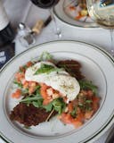 Thinly sliced, pan seared steak served with romaine and arugula salad tossed with red wine vinaigrette.